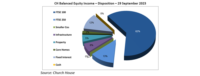 Balanced Equity Income made modest gains over the period, including gains for the fixed interest and some of the property holdings (a pleasant change), but the infrastructure holdings continue to struggle. The Fund went ex-dividend on 1st October, the payment will be around 10% higher than the equivalent period last year, putting the ‘B’ income units on a historic yield of 3.9%. This was the disposition at the end of the period, right.